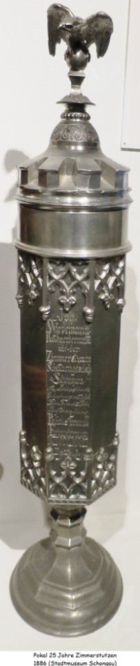 1861 wurde der Zimmerstutzen Gesellschaft Schongau „die Lechler“ von Büchsenmacher Eigner, Brauereibesitzer Bader und Malermeister Stegmüller gegründet. Mit Zimmerstutzen konnte man auf 15 Meter auch in Nebenräumen von Gaststätten trainieren und Wettkämpfe austragen. Ein Pokal, gestiftet von Herrn Johann Wiedemann Rothgerbermeister in Schongau existiert noch.