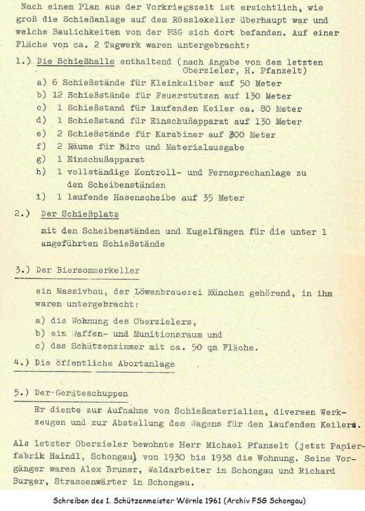 1938 dann: Beschlagnahmung des gesamten Geländes und Schießanlage durch die Wehrmacht zur Errichtung einer Flak-Artillerie-Schule. Abbruch des Rösslekellers und Errichtung eines Verwaltungsgebäudes. Die Schießhalle wurde von der Stadt Schongau auf dem Helgoland Gelände wieder aufgebaut und während des Krieges geringfügig genutzt.